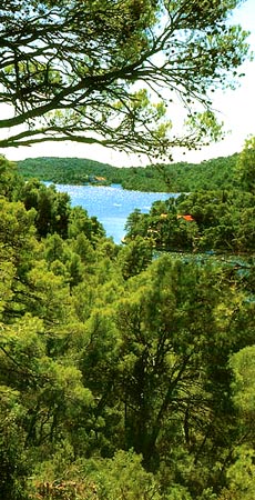 Die Häuser des Städtchens befinden sich inmitten des dichten Kiefernwälder, der die ganze Nordinsel Mljet bedeckt und der unter Naturschutz steht.